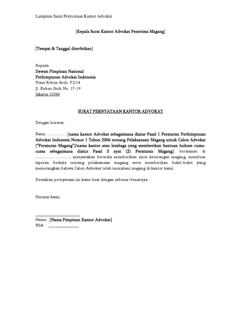 Contoh surat tugas dari kantor advokat Contoh Surat Magang Di Kantor Advokat Contoh Surat